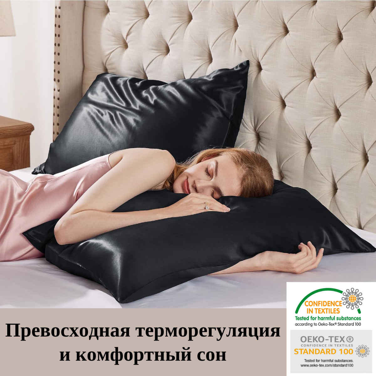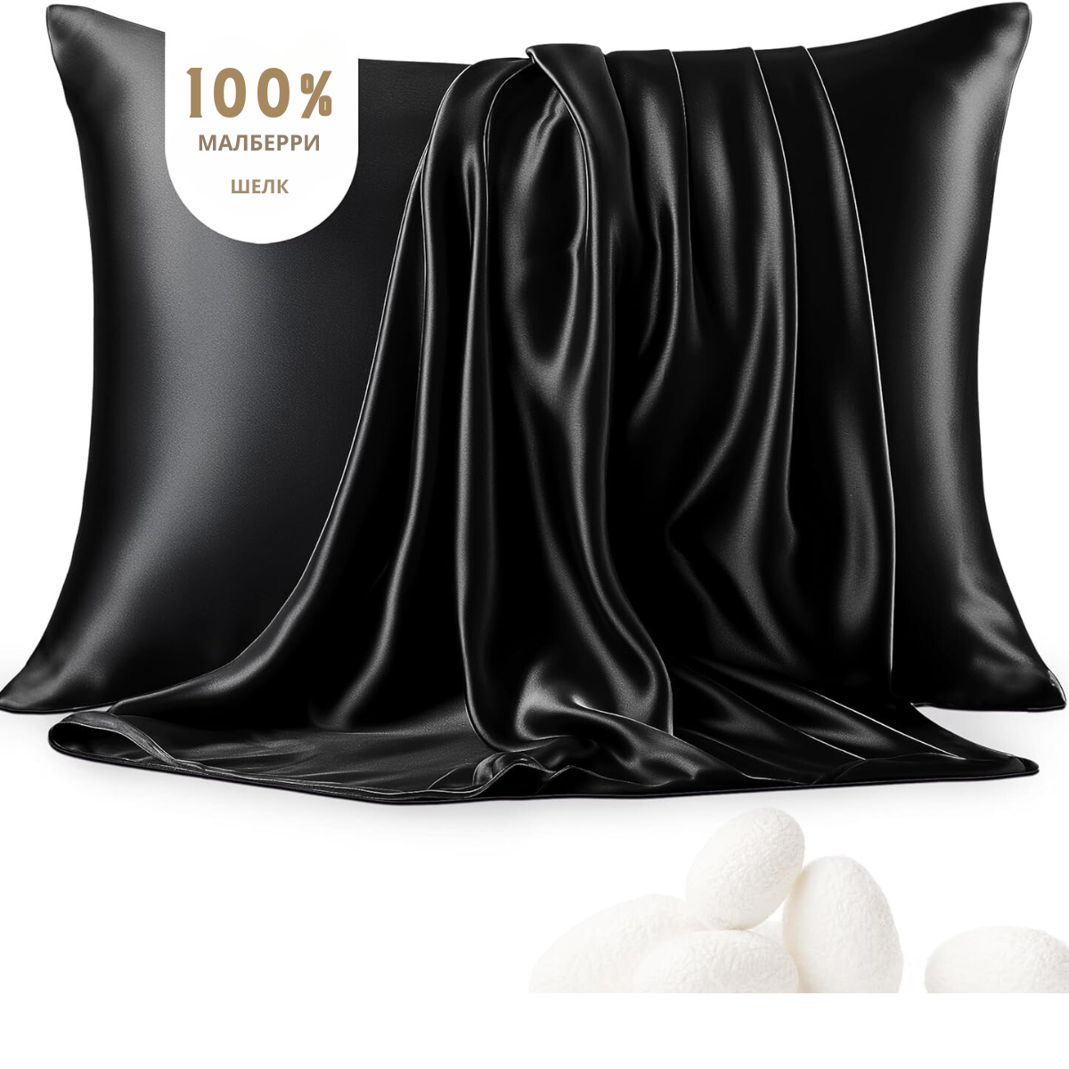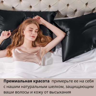 Шелковая наволочка 50х70, черный