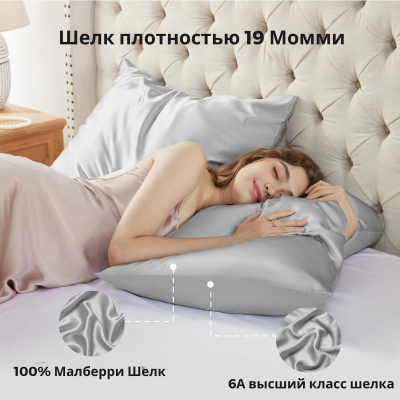 Наволочки Renolli изготовлены из тончайшего 100% тутового шелка класса 6А, который воплощает в себе роскошь и эффективность. Материал используемый для наволочки плотностью 19 Момми, что означает, что наш шелк содержит 19 нитей на 1 миллиметр ткани. Такой оптимальный вес и ткань не только обеспечивают долговечность наволочек, но и максимально повышают косметические преимущества шелка, что делает его незаменимым компонентом любого ухода за кожей и волосами.